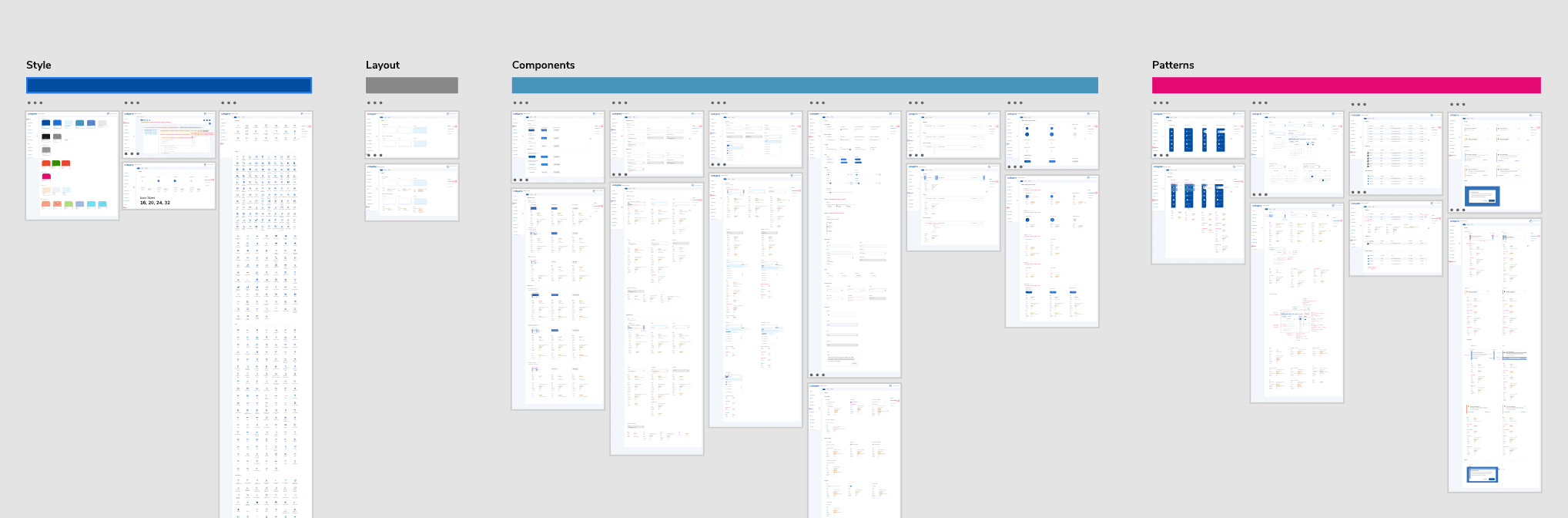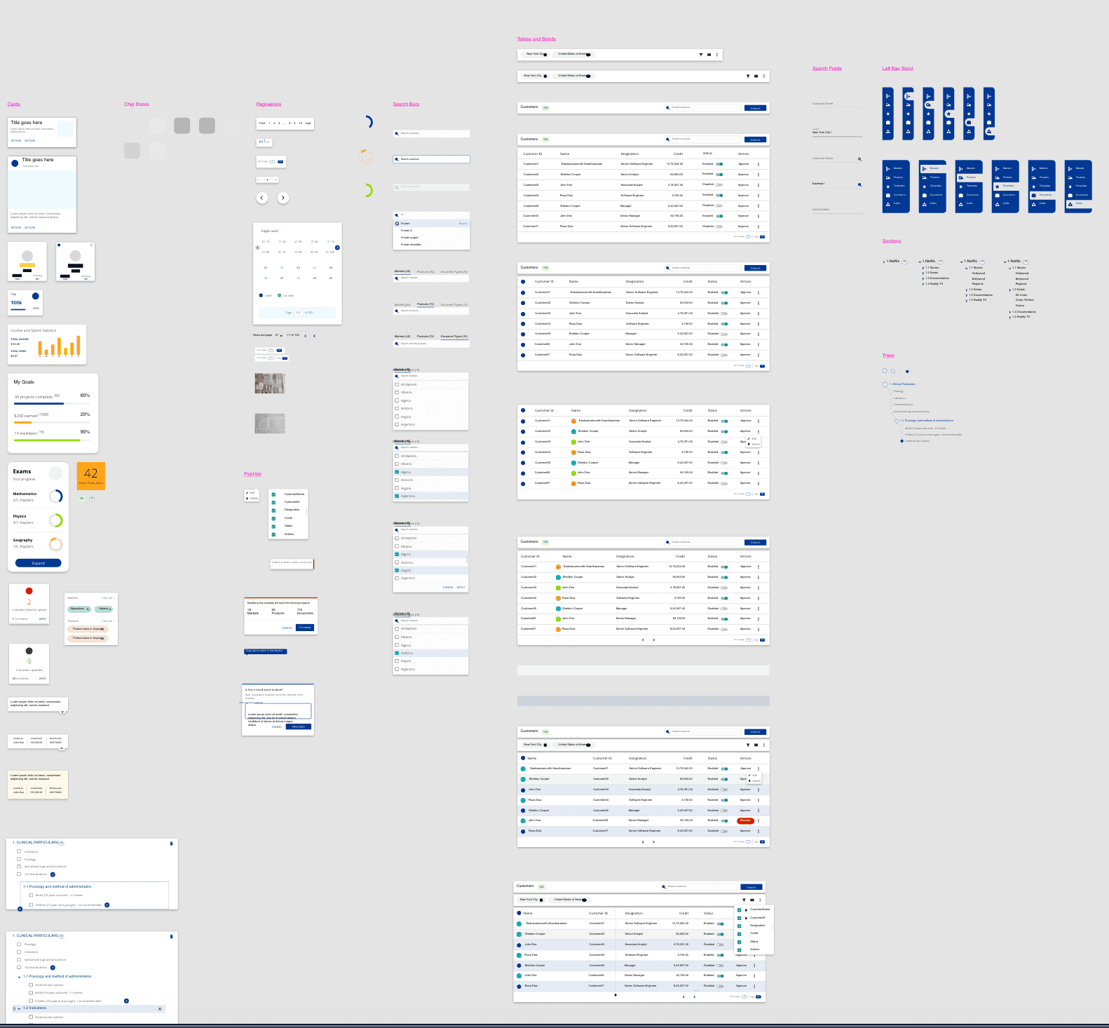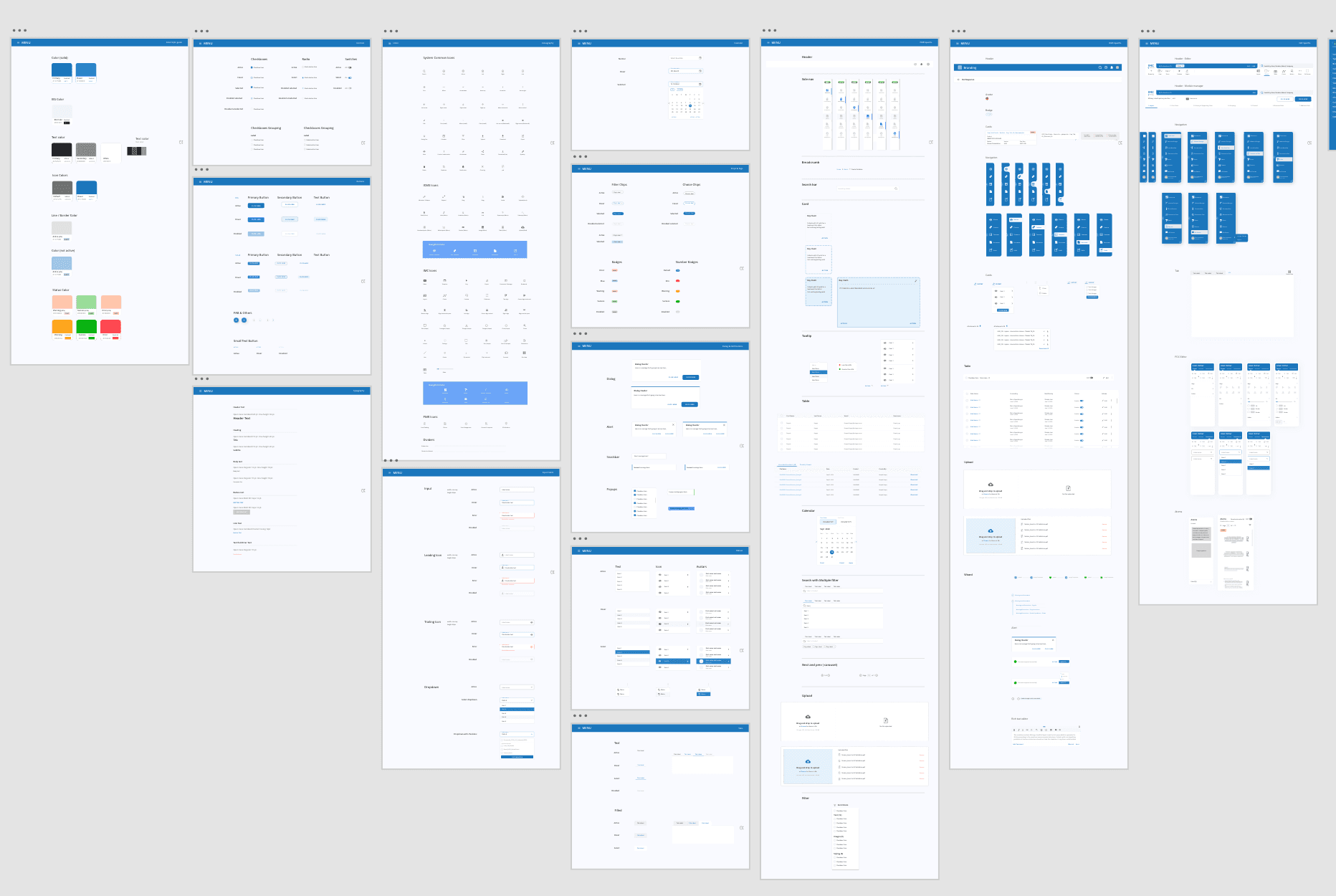 Cataloged repeated components (buttons, inputs, tables, navigation, modals)